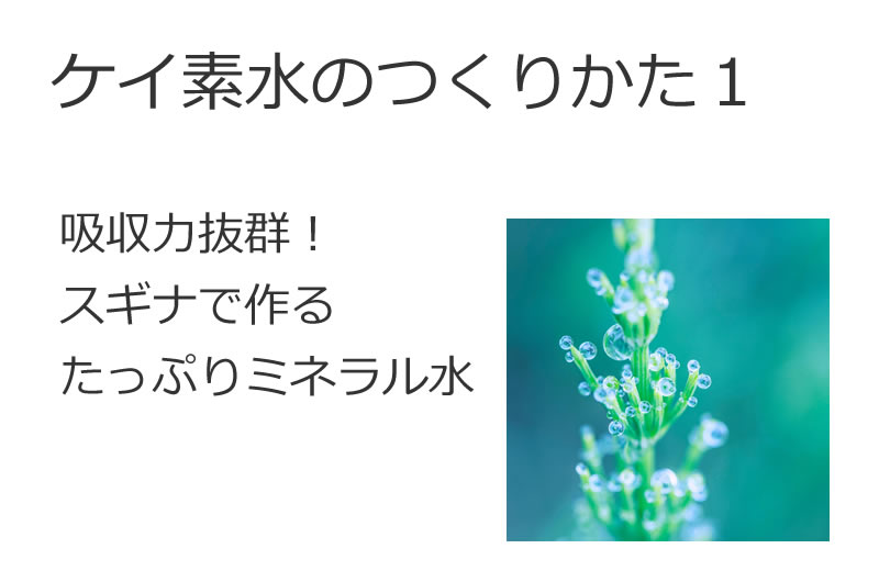 それがスギナ(つくしの親株)を使った植物由来のケイ素水です。